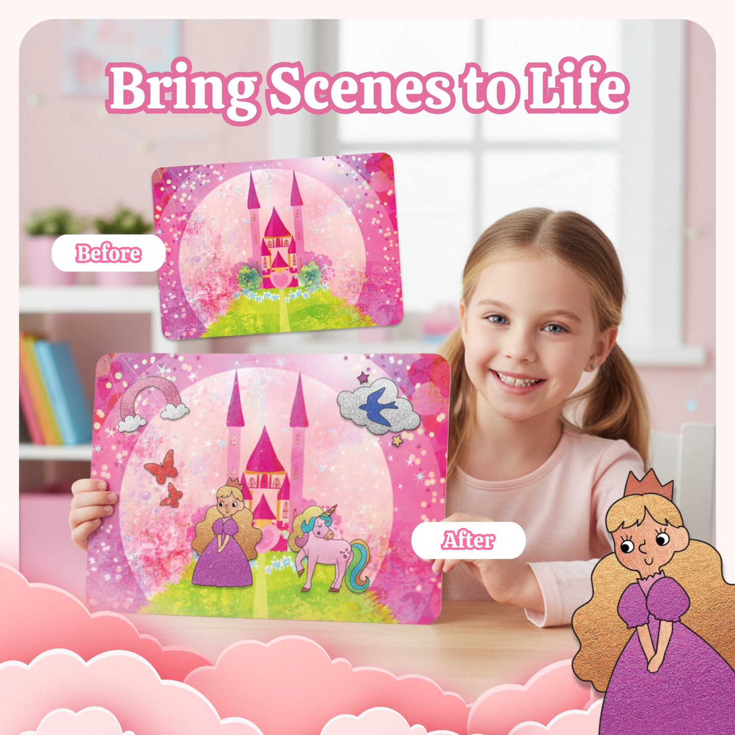 Unleash your child's creativity with Foil Fun Sticker Art—the ultimate mess-free craft adventure! These dazzling, easy-to-use foam stickers let kids peel, stick, and reveal shimmering designs that sparkle like magic. Perfect for little hands, it’s a no-fuss, no-mess way to create colorful masterpieces while boosting fine motor skills and imagination. Every sticker brings a burst of foil-tastic fun! Magic Princess & Unicorns Theme.